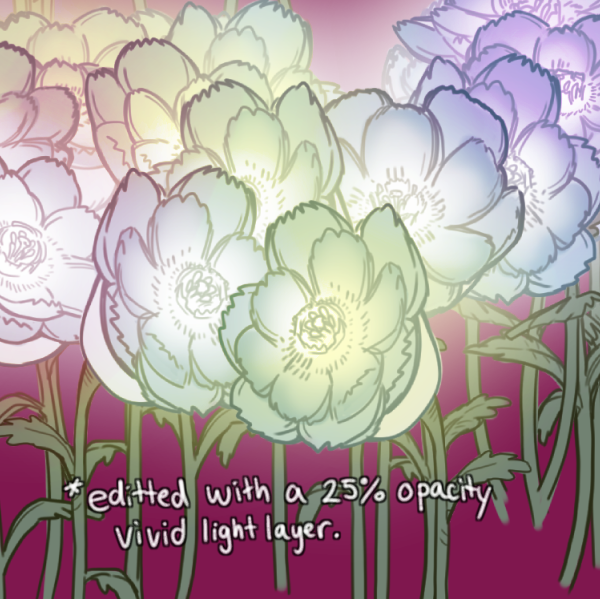 Two Clip Studio Paint brushes for Elpis Flowers and their greens from the Endwalker expac of Final Fantasy XIV. These two brushes are pre-lit and can have their colors changed with a clipped vivid light layer.